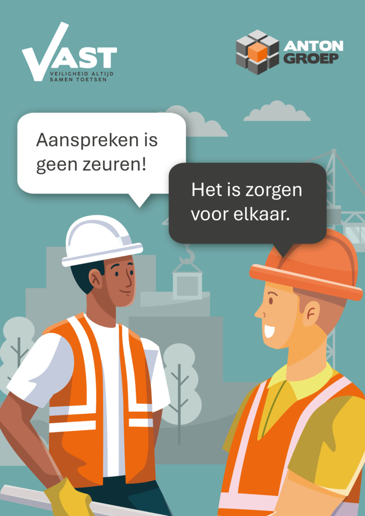 Hier ligt voor ons als groep een mooie kans om samen in te verbeteren. Het onderwerp van de komende VAST-campagne is daarom het veiligheidsthema ‘Elkaar leren aanspreken’.