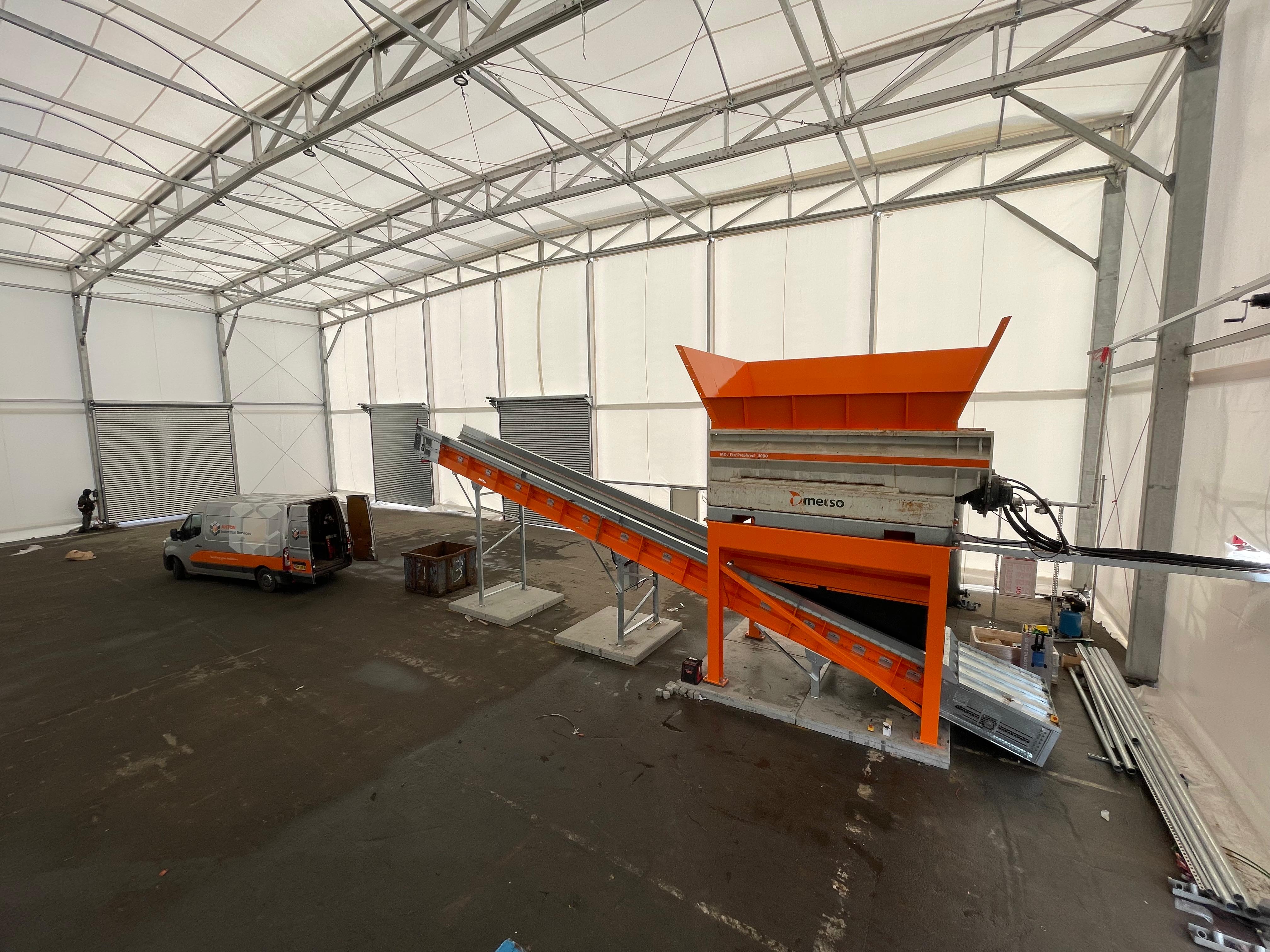 Opbouw van twee complete shredderlijnen, ingericht voor de veilige verwerking van metalen lachgascilinders.