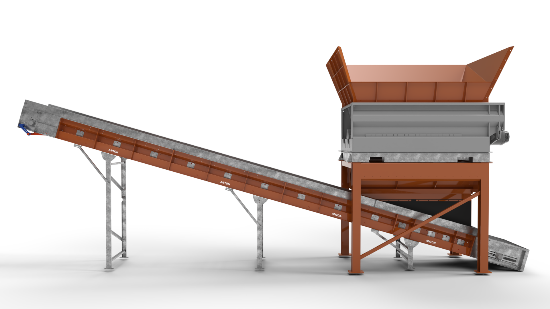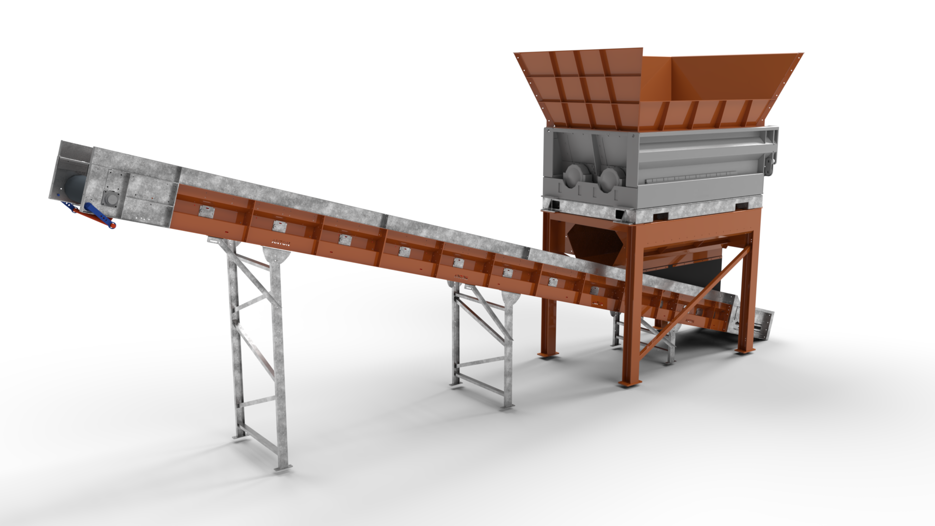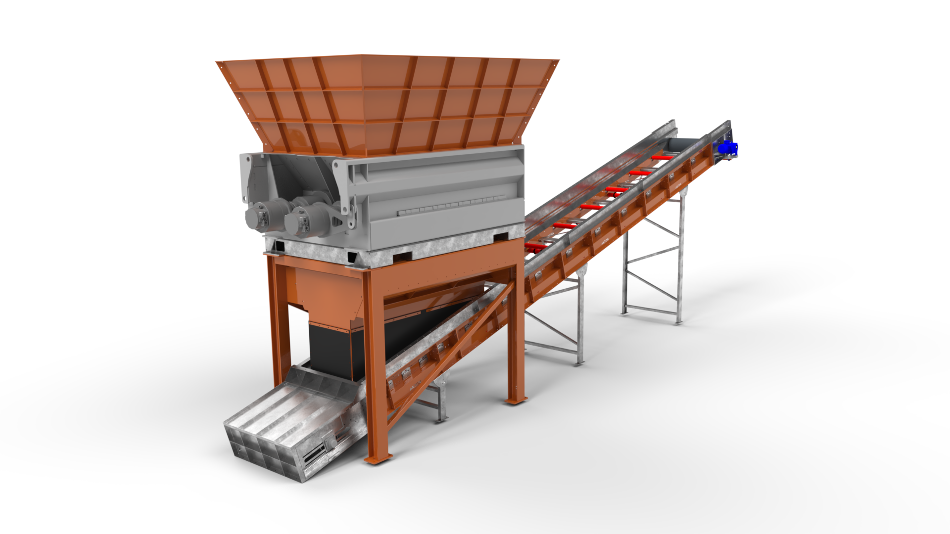 Engineering en bouw van shredderframes, invoertrechters en een transportband op maat.