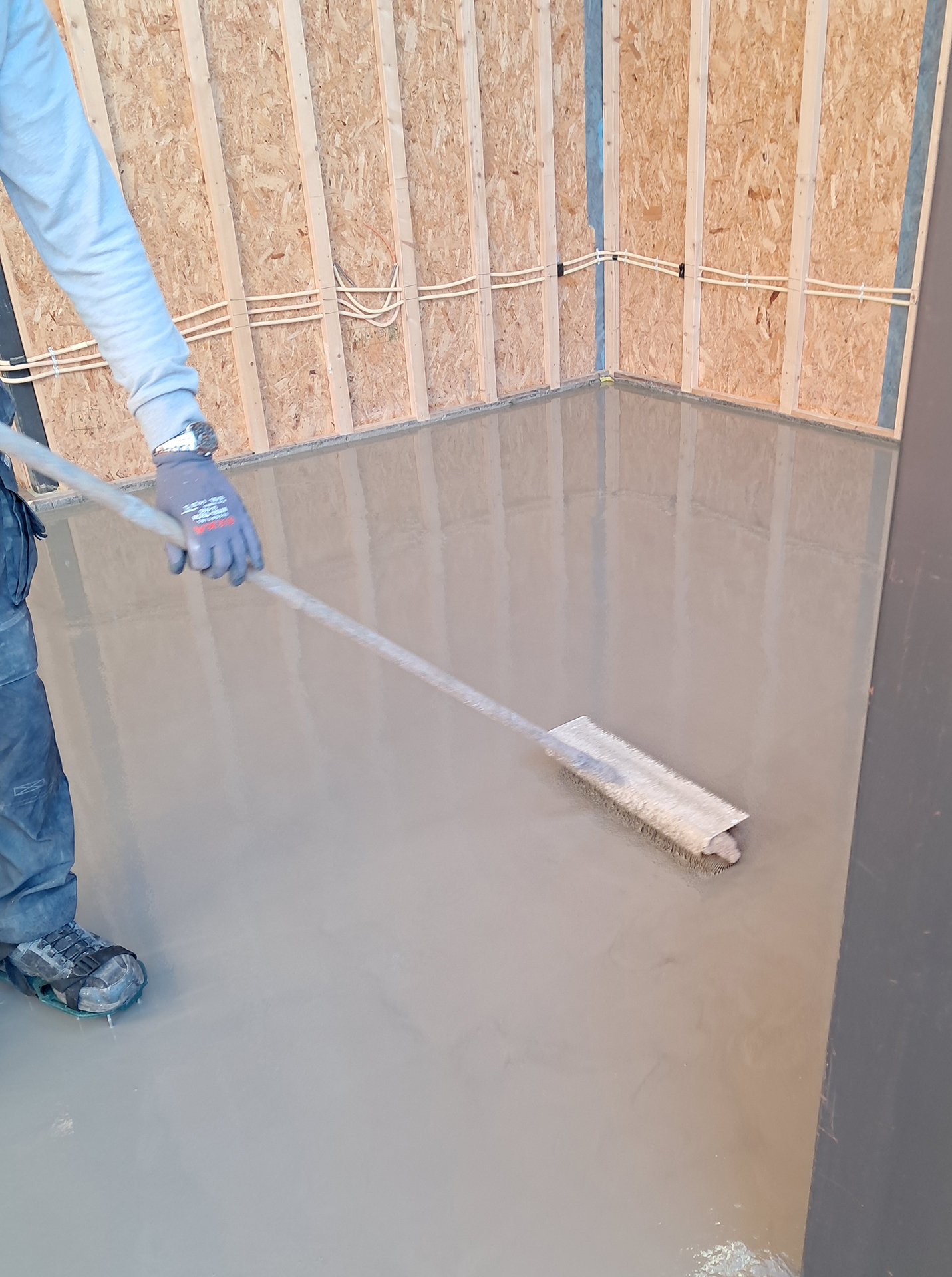 Het traject verliep in meerdere stappen: eerst werden de hoogteverschillen in de bestaande vloer afgefreesd, daarna werd de oppervlakte zorgvuldig geschuurd en voorzien van een egalinelaag. Tot slot is er een strakke polyurethane eindvloer aangebracht in een mooie beton-look, volledig naar tevredenheid van de opdrachtgever. Het resultaat is een duurzame, onderhoudsvriendelijke vloer met een moderne uitstraling.